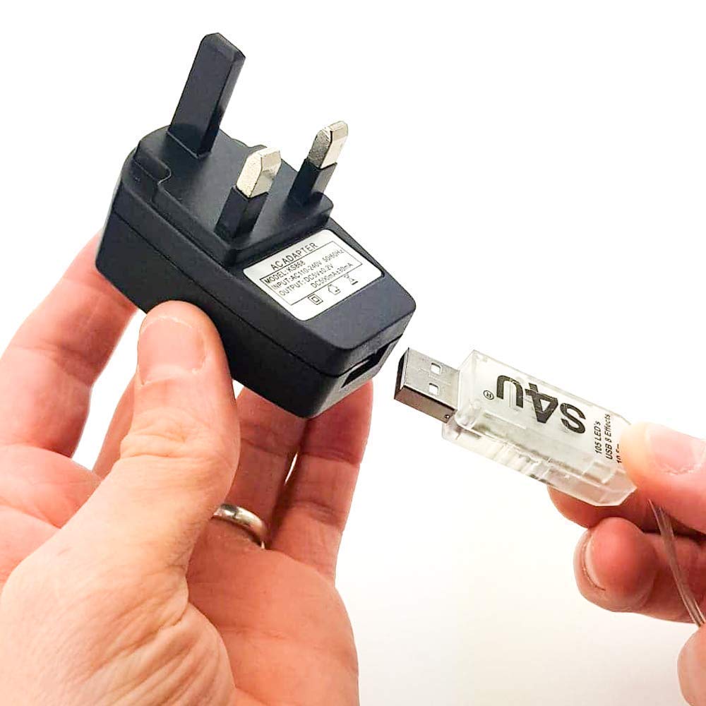 100 LED Fairy Lights 10.5M Now with 105 LEDs 8 Function USB Power Supply Copper & Black Wire S4U