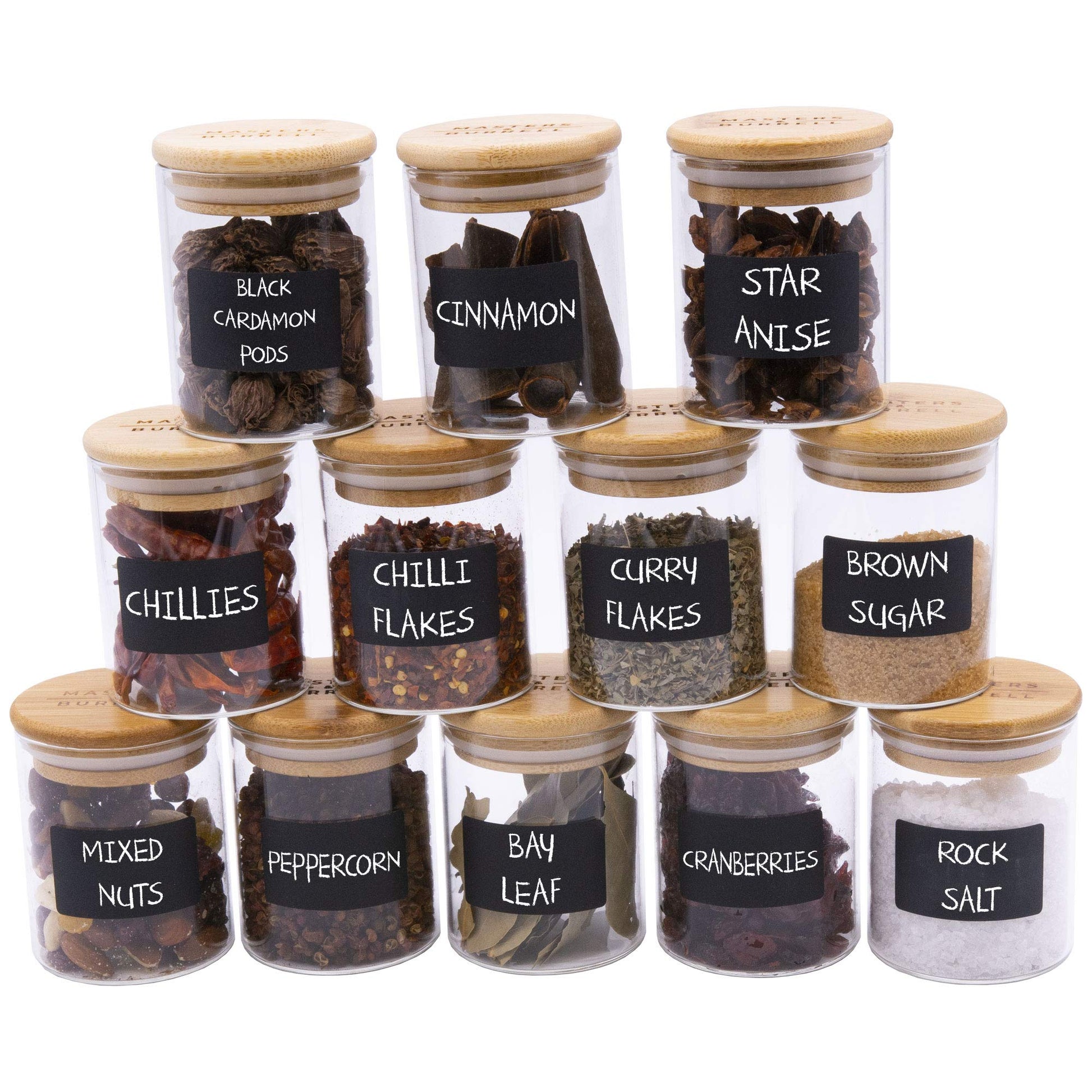 150ml Glass Storage Jars with Bamboo Lids 12pcs Airtight Kitchen Containers for Storage Canister for Spices Clear Preserving Seal Containers Masters & Burrell