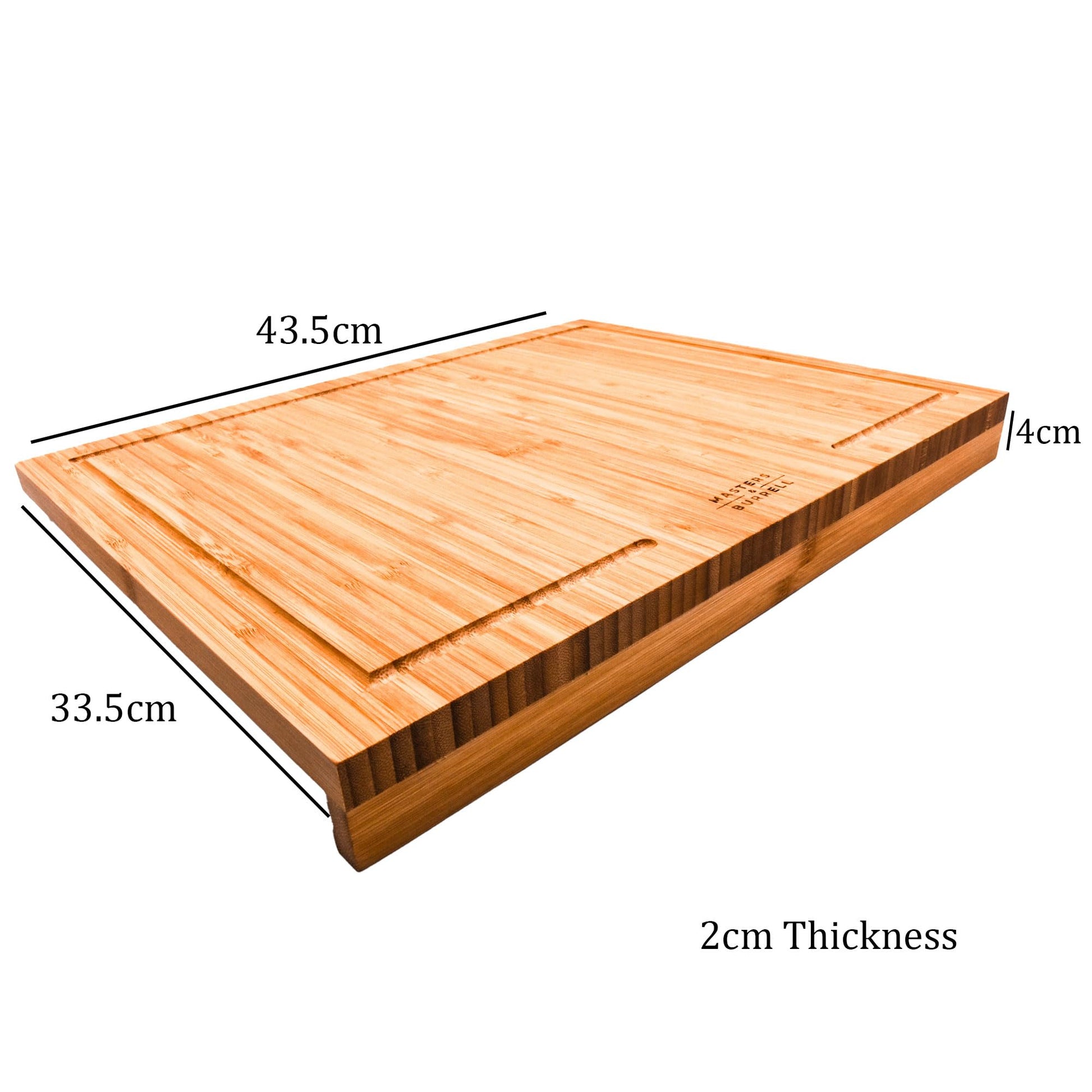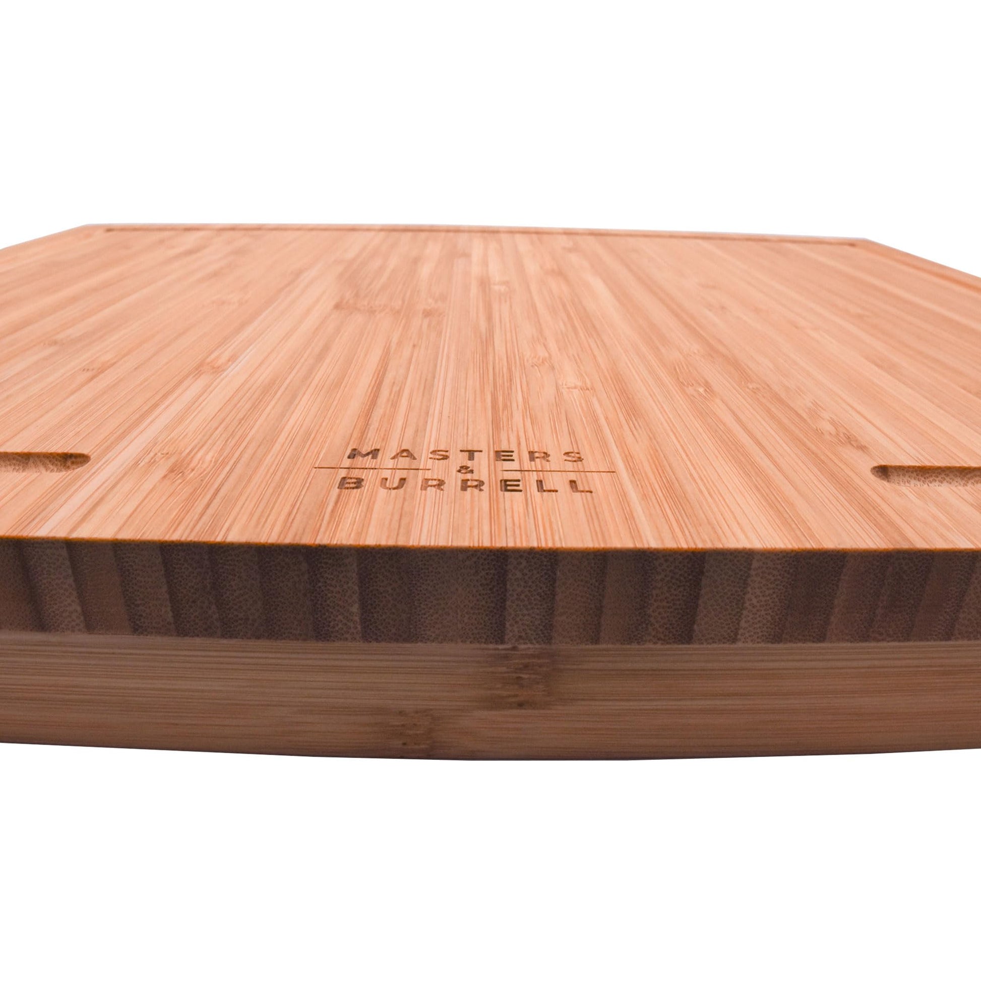 - With the Masters & Burrell brand we tried to make this elegant Bamboo Chopping Board a size that would be useful for all purposes. It has a large surface area, ideal for cutting vegetables, cheese’s and much more. The Chopping Board is made from solid bamboo and easy to clean.