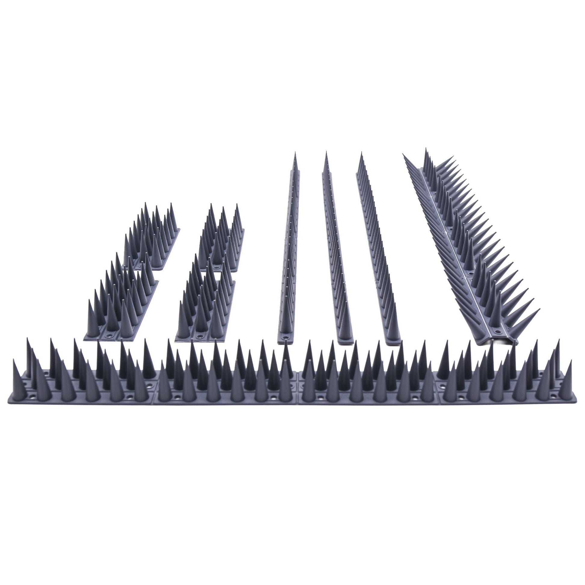 - Choose from Brown, Black or Grey plastic fence spikes. Each strip is approx. 44.3cm in length, 3.8cm high and 4.3cm wide. These strips can be cut into 3 narrow strips and snapped into 4 sections so they can fit any part of your fence/wall.