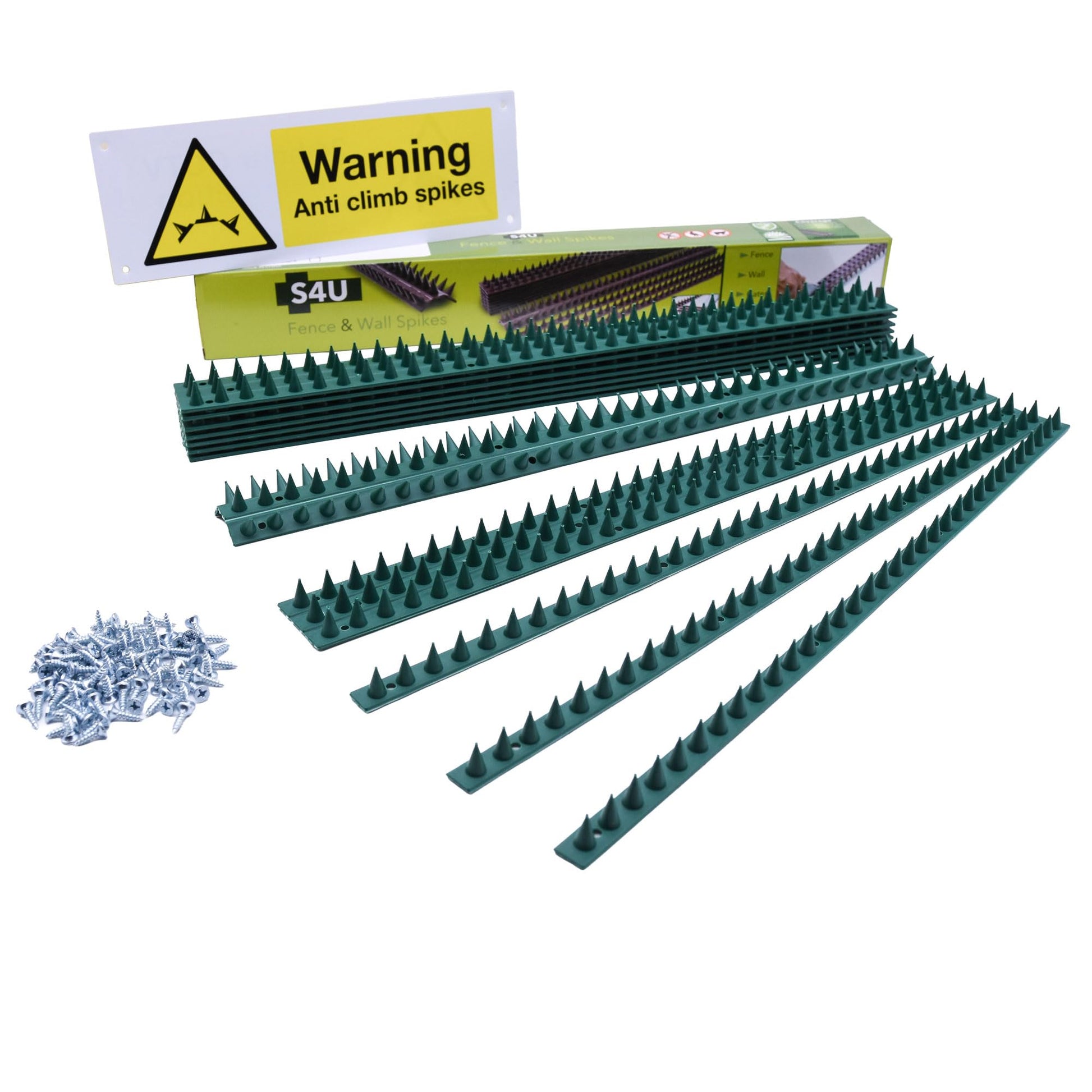 S4U Fence Wall Spikes Garden Security Guard Anti Climb Cat Bird Spikes Intruder Pest Deterrent 50 x 4.5 x 1.5cm Warning Sign & Screws Included