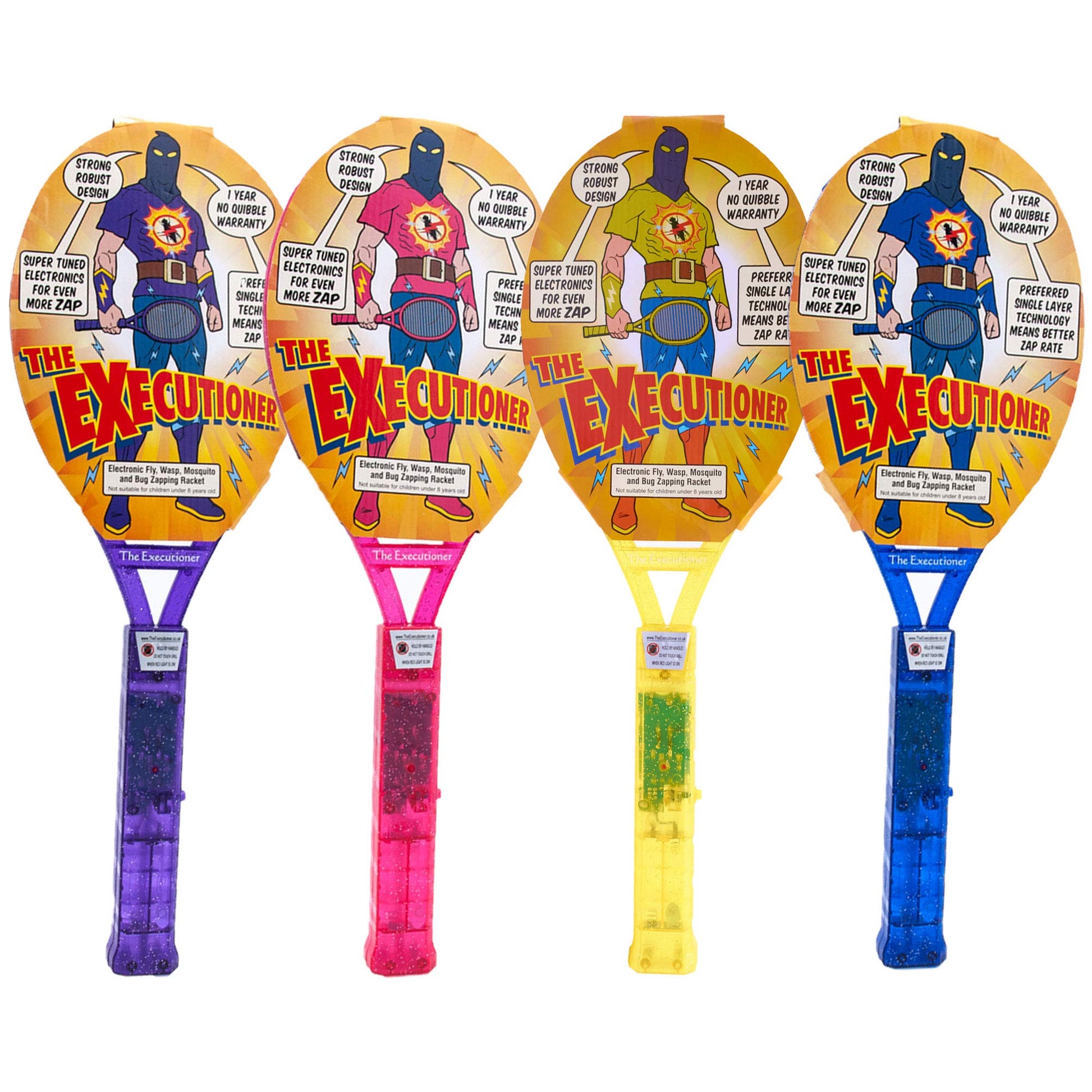 The Executioner Coloured Mosquito, Fly, Wasp, Bug, Insect Swatter/Killer and Bug Zapper Racket Single Layer for Most Efficient Zapping Indoor Outdoor Long Handle (4 Pack)